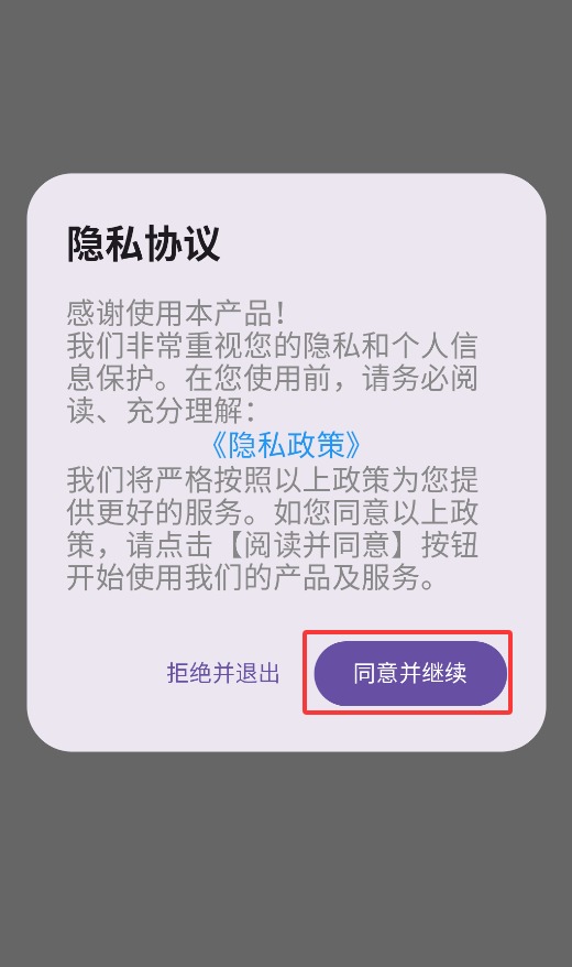 1、首次启动APP时需点击同意用户协议弹窗,方可进入主界面开始使用。
