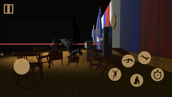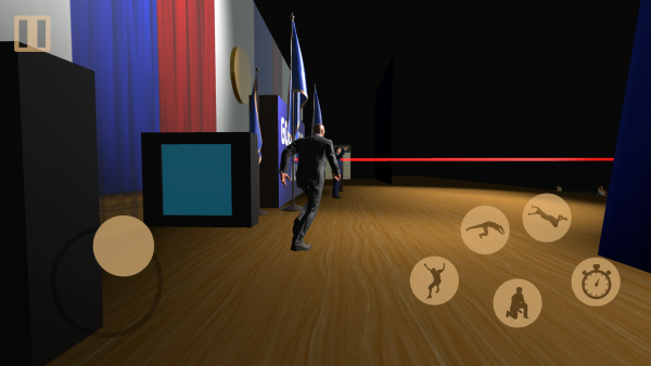 游戏共有两种游戏模式。一种是保护总统的章节模式,共有10章;还有一种就是纯属恶搞的摔跤侮辱玩法。在章节模式,玩家需要在暗杀者射出子弹之前,通过徒手抓子弹、舍身炸碉堡等酷炫的动作,让总统避免被一枪爆头的厄运。随着章节的推进,游戏难度会逐渐增加。具体表现为在你前进的路上设置各种障碍,或将暗杀总统的手段变为扔炸弹、扔玉米卷等。模式虽然单一,但和前段时间很火的《斯大林请冷静》一样,精心设计的关卡往往能带来很多乐趣。