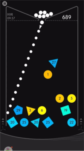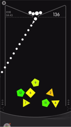 几个方块围起来时,利用墙壁,将球弹到它们的包围圈内,能够较有效率的消除。