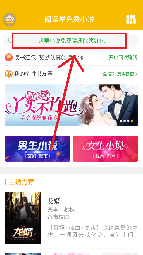 按「男频/女频」智能划分,呈现《开局签到七个神仙姐姐》等爆款作品
