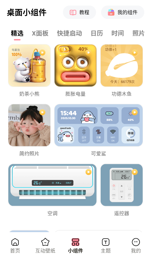 趣味型:如“功德+1”木鱼、膨胀电量、奶茶小熊等创意组件。