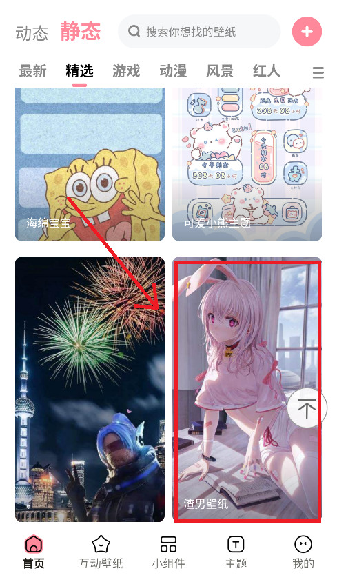 1、进入软件,在首页翻找到自己喜欢的壁纸;