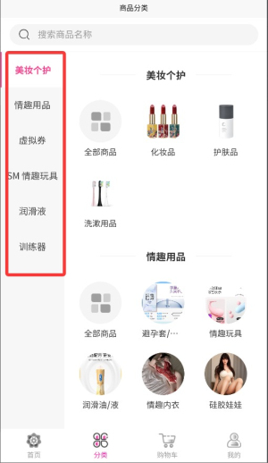 2、在主页面选择分类功能入口,浏览各类商品的详细分类列表。