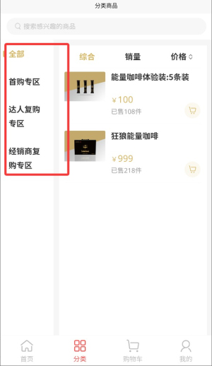 2、在主页面选择分类功能入口,浏览各类商品的详细分类列表。