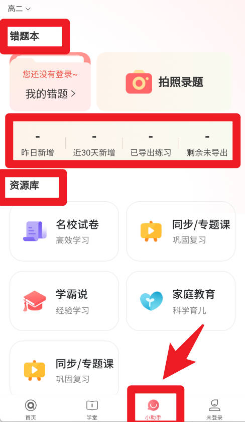 5、小助手提供错题本、资源库和名校试卷等功能,支持拍照录题、导出错题,方便孩子进行针对性练习和复习。