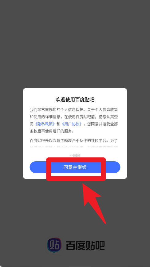 1、首次进入时,需要先阅读隐私政策与用户协议,点击同意并继续按钮,即可顺利进入应用开始体验社区功能。
