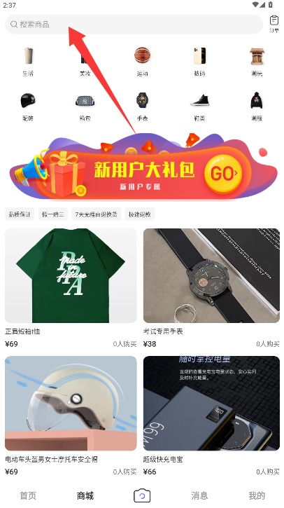 4、切换到商城页面可浏览各类商品,通过搜索功能查找心仪商品进行购买。