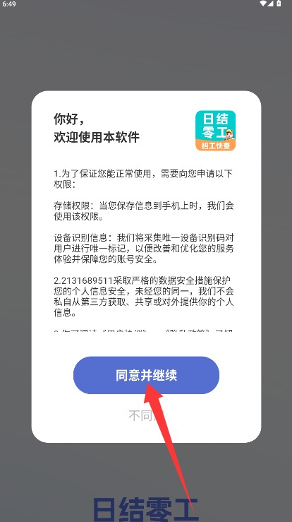1、初次使用需阅读用户协议与隐私政策,确认无误后点击同意并继续按钮进入。