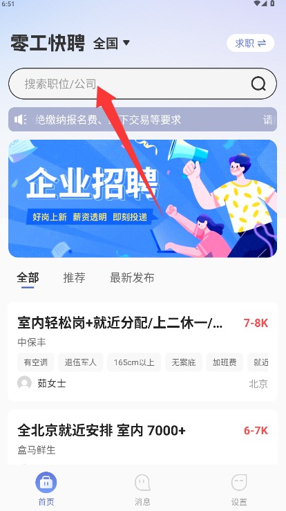 3、进入首页浏览系统推荐的日结岗位信息,或通过搜索功能查找附近零工招聘。