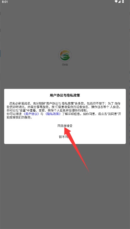 1、初次使用需阅读用户协议与隐私政策,确认无误后点击同意并接受按钮进入。