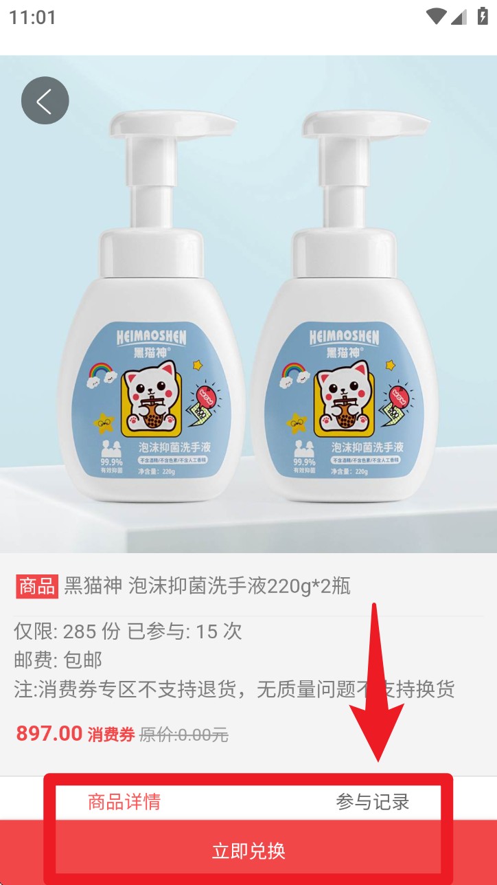 2. 选中心仪商品后,点击下方的商品详情或立即兑换按钮,查看兑换规则并完成操作。