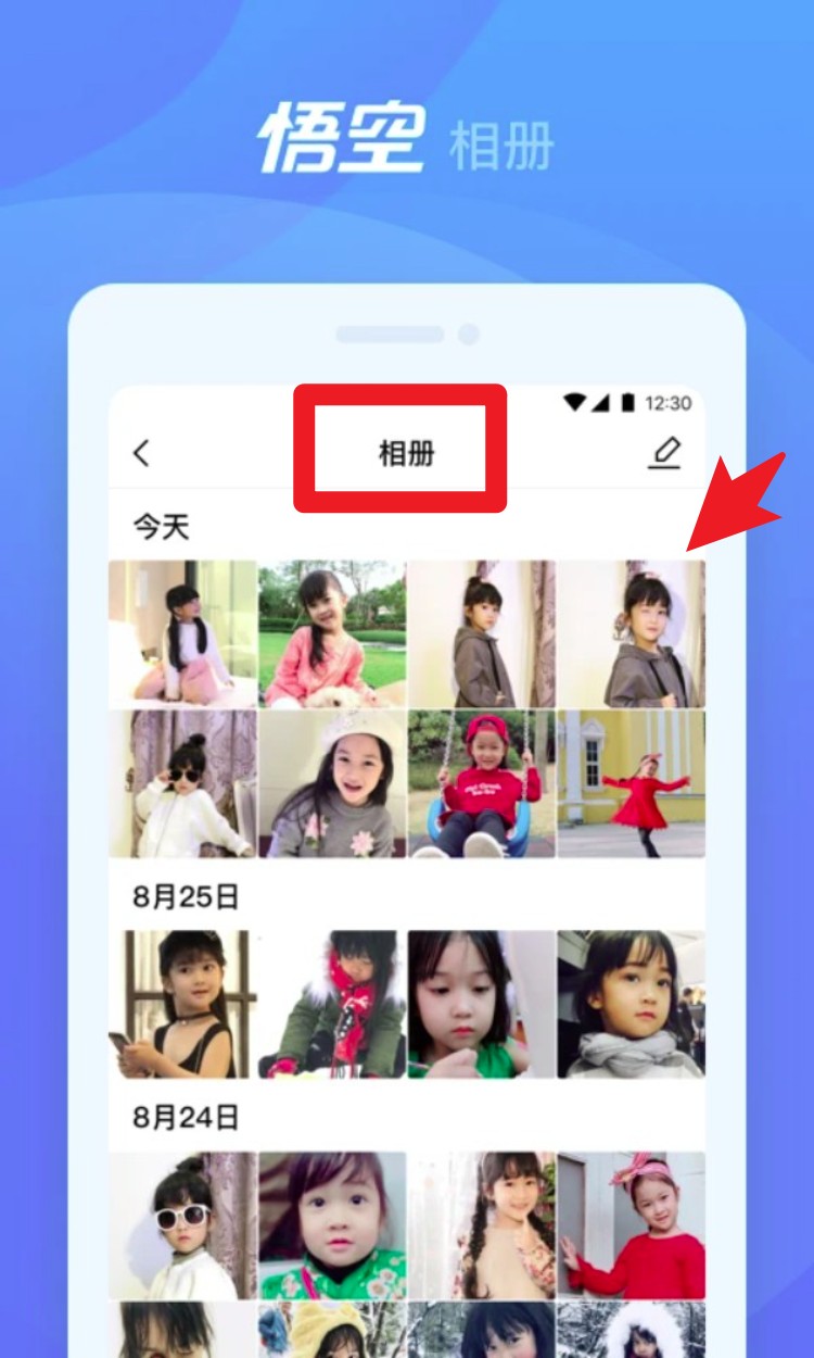 4. 点击相册模块可查看孩子日常拍摄的照片,依照日期自动分类,支持浏览、删除与同步保存至家长设备中。