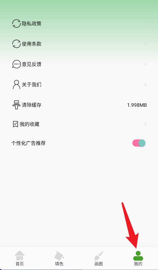 4、点击我的图标进入个人中心,可管理收藏、清除缓存与查看隐私条款等信息。