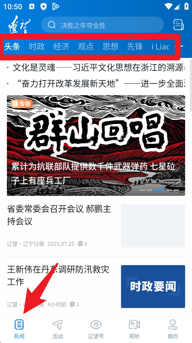 1. 打开App并点击底部新闻页,可浏览头条、时政、经济等各类资讯栏目,滑动切换频道即可查看对应内容。