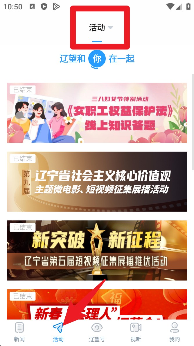 2. 进入活动栏目,可查看历次线上线下专题活动,包括知识答题、征集展示、节日互动等,支持查看往期结果。