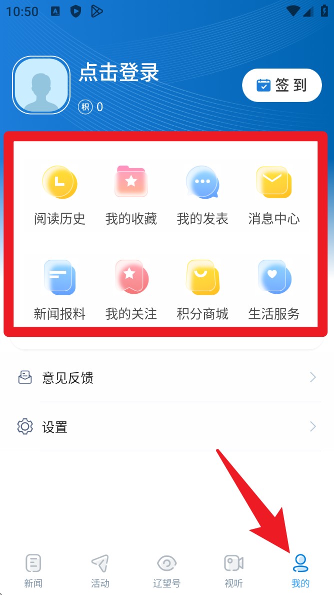 5. 进入我的页面可查看阅读历史、发言记录、关注账号及积分商城,还可进入设置中心进行个性化调整。‘