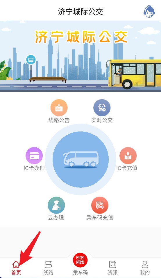 1、首页界面集成公交查询、IC卡服务与乘车码功能,方便用户一站式掌握多项交通服务信息。