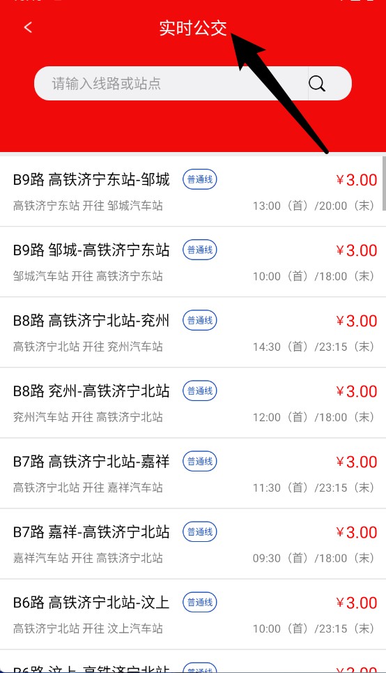 3、实时公交页面可输入线路或站点,获取公交车当前状态,精准掌握发车时间与票价信息。