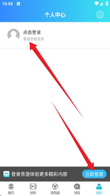 1、打开青游社区 APP,进入 “我的” 页面后点击 “立即登录” 按钮。