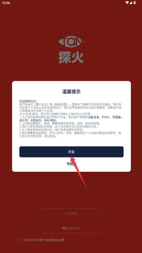 1、初次使用需阅读平台服务条款与隐私政策,确认后点击同意按钮进入应用。