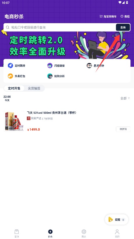 3、进入秒杀查询界面,输入或粘贴商品口令链接,系统将自动显示对应促销活动信息。
