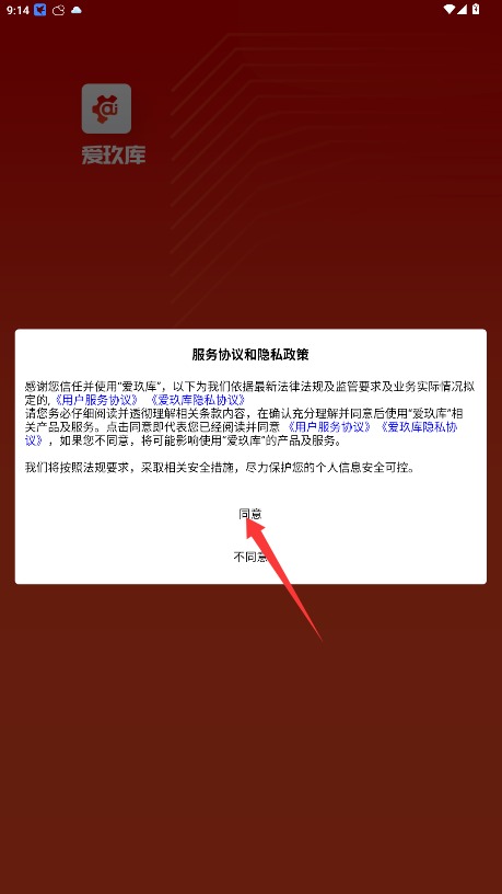 1、首次启动需查看用户协议与隐私条款,确认内容后点击同意选项进入应用主界面。