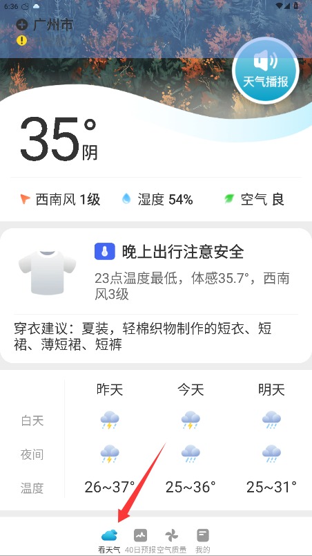 3、在天气主页可直观查看当前温度、湿度、风速等实时数据及未来40日的天气预报。