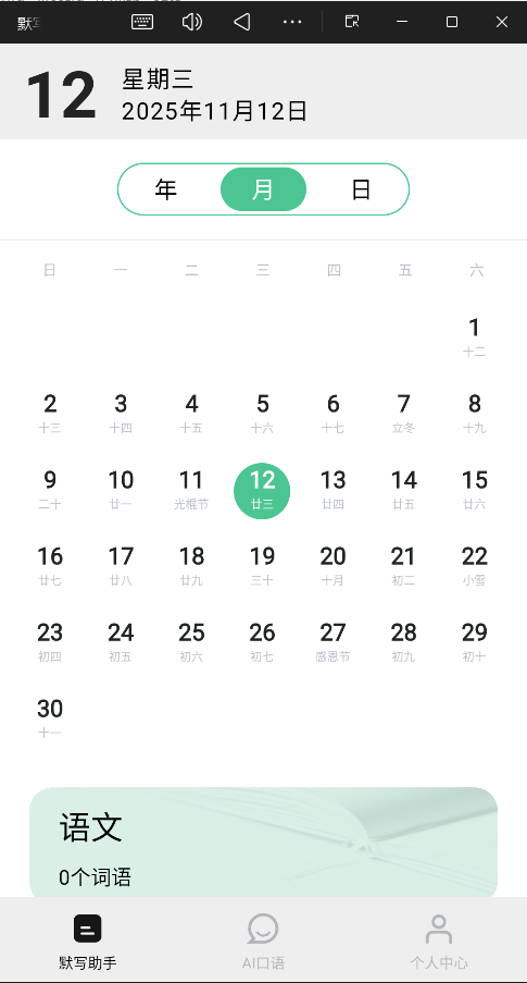 日历视图:首页的日历可以让你清晰地查看每天设定的听写任务,帮助规划学习。