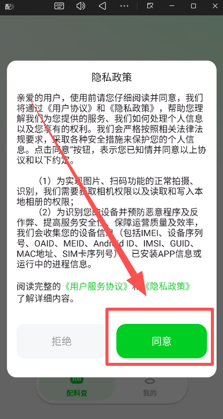 打开App后,首先会弹出《用户协议》和《隐私政策》,需要点击“同意”才能使用。