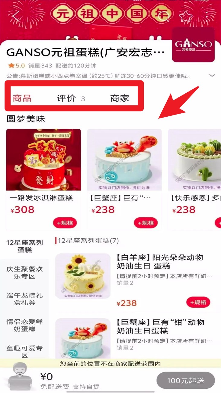 3、糕点预订取货:直接使用品牌蛋糕店线上服务;完成款式选择与支付,到店立即领取。