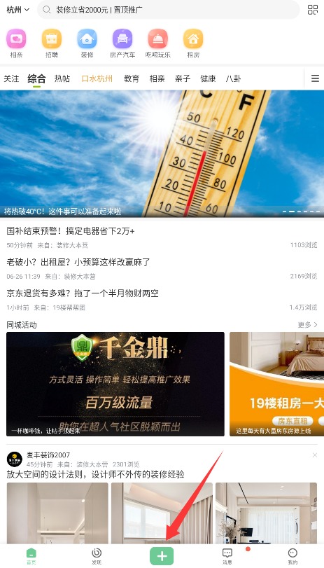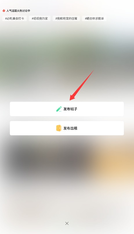 2、进入应用主界面后,点击下方菜单栏中央的+号按钮,点击即可跳转至内容发布页面。
