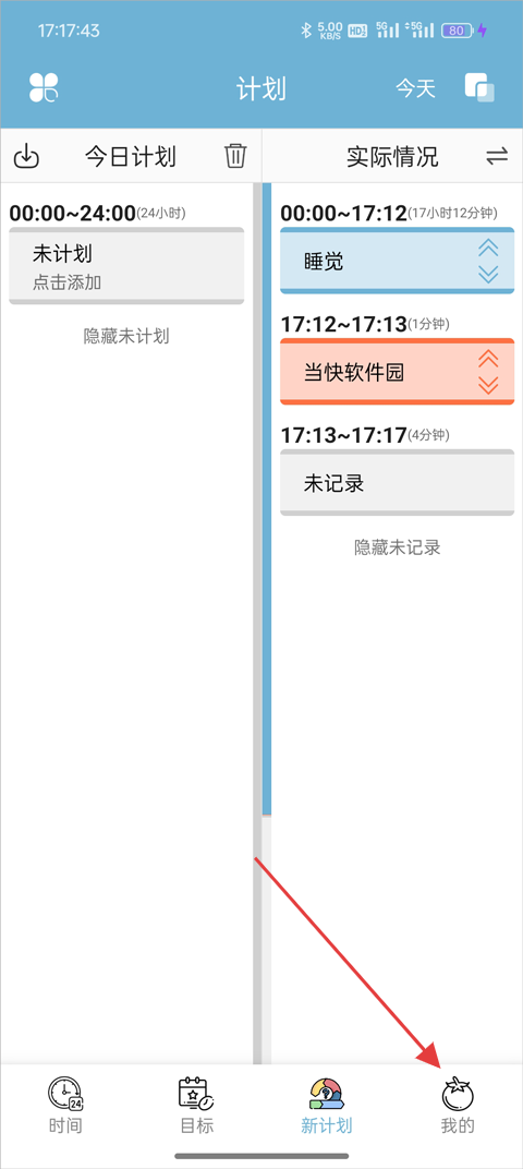 2、借助直观的时间轴,可快速回顾今天、昨天及过去任意一天的时间分配情况;