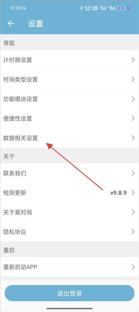 3、在设置页面的功能列表里,选择 “数据相关” 选项,进入数据管理页面;