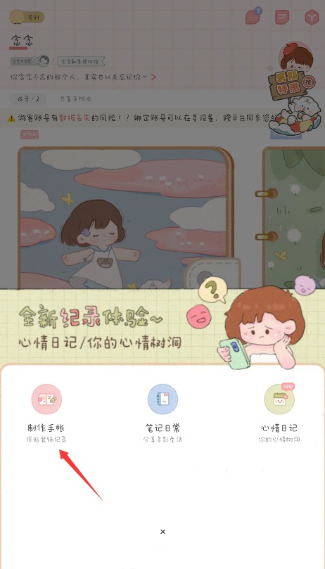 2、选择制作手帐功能进入编辑界面,系统将提供多种创作模式供用户选择。