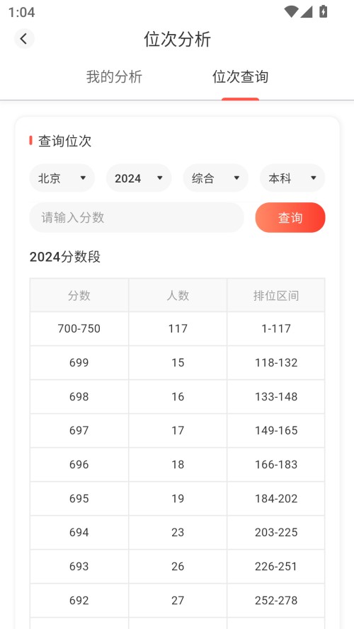 2、通过分数查询当前省份(城市)往年对应位次号(依托 “一分一段表” 数据换算),结合位次精准判断可报考院校范围,让志愿填报更具科学性。