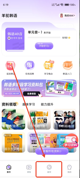 1.点击进入趣学页面,