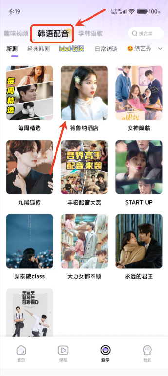 2.点击韩剧配音,选择喜欢的韩剧点开,