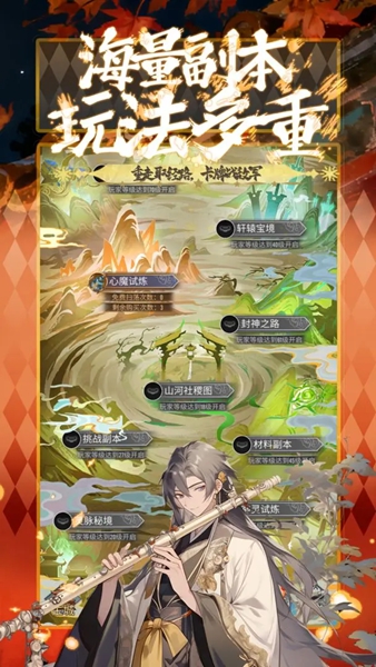 2、可沉浸式体验多元特色玩法:探秘轩辕宝境的远古遗迹、挑战心魔试炼中与 “另一个自己” 博弈提升战力、踏上层层递进的封神之路突破境界、解锁山河社稷图的战略版图、闯荡灵脉秘境获取稀有升阶材料,部分秘境还设有隐藏房间与奇遇事件,支持单人挑战或 2-5 人组队协作,通关速度更可冲击排行榜名次。
