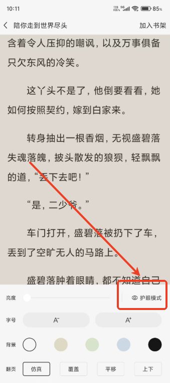 4.打开护眼模式,这样在阅读的过程可以保护好用户的视力。