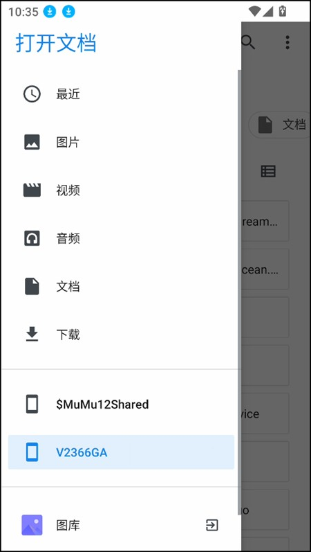 2、点击页面左上角三横杠图标,进入手机存储目录界面;