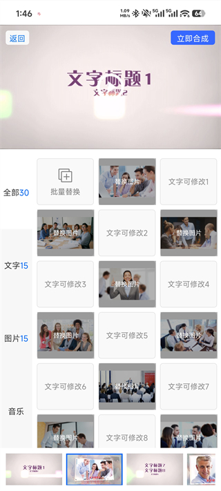 5、进入制作界面后,按提示批量替换模板中的图片与文字内容,完成修改后生成专业视频。
