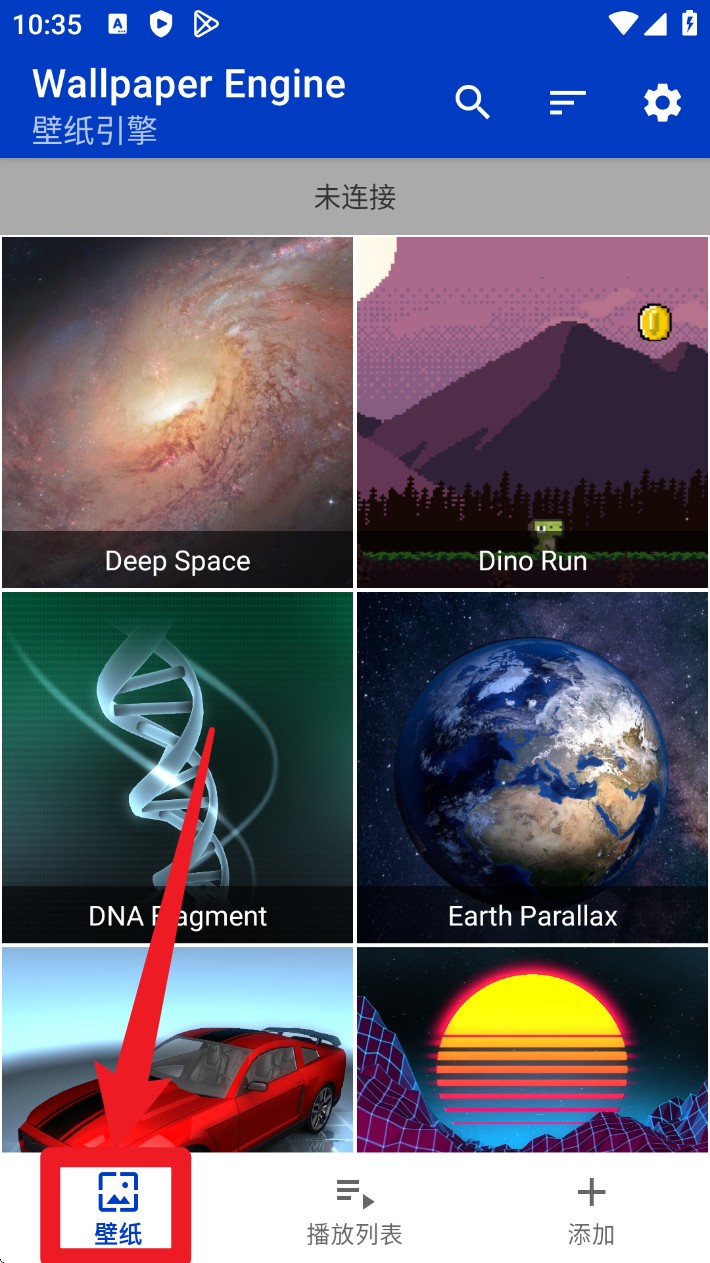1. 打开App后点击底部的壁纸页签,即可浏览本地壁纸库,预览当前可用的动态壁纸资源。