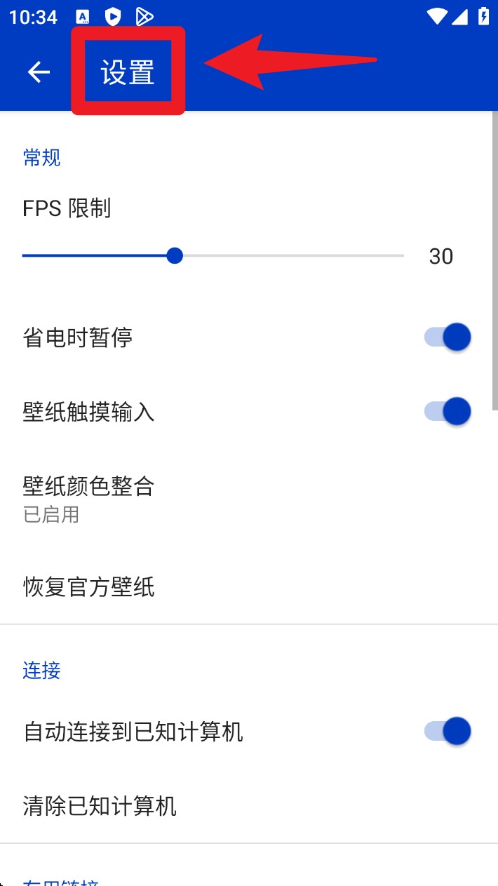 4. 点击首页右上角齿轮图标进入设置界面,自定义帧率、触控效果、颜色整合等播放参数。