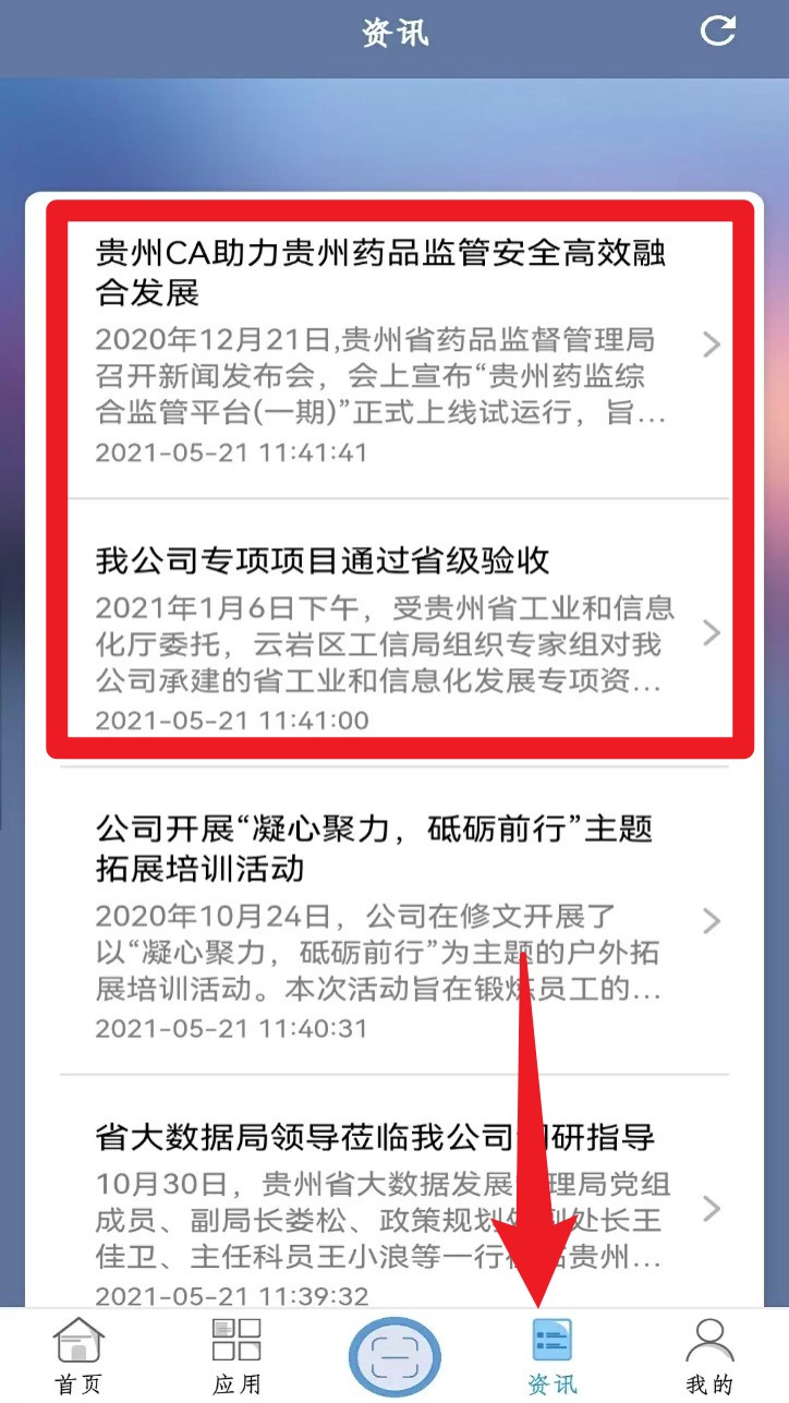 2. 切换到资讯页,可查看药品监管、项目验收等最新新闻动态,点击可阅读全文详情。