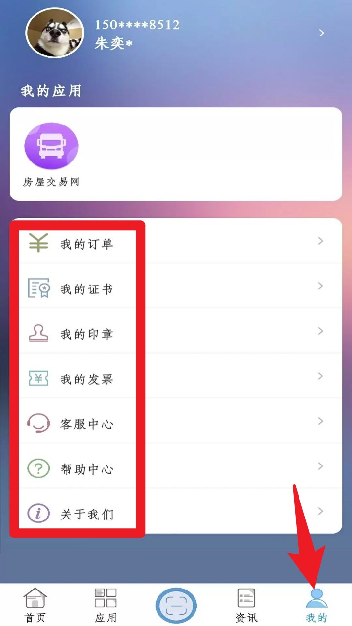 3. 点击底部我的可查看个人应用、订单、证书、发票等信息,并进入客服或帮助中心进行操作。