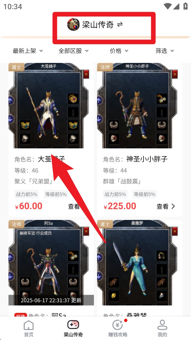 3. 点击某一具体游戏名称,即可查看该游戏内所有角色商品并进行筛选与浏览。