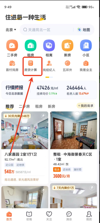 1.在当游网下载安装我爱我家APP,如图点击房贷计算,