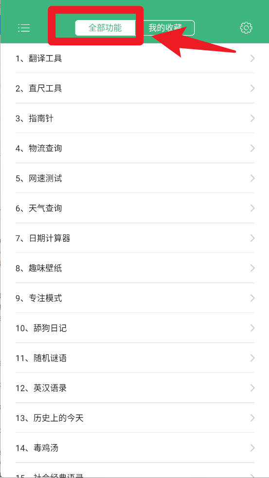 1、在首页点击全部功能即可查看所有内置工具,方便快速找到所需功能进行使用。