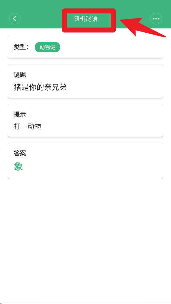 5、在随机谜语中可根据提示猜谜,答对后即可查看正确答案,增添趣味与知识。