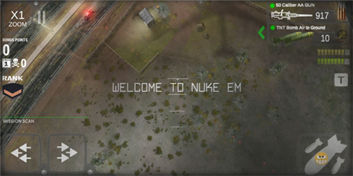 1、核心玩法:先为轰炸机装配指定类型的核弹,驾驶战机抵达目标空域后,瞄准敌方阵地、建筑集群等关键区域精准投掷,核弹爆炸后将覆盖范围内的所有目标彻底摧毁,完成歼灭任务;